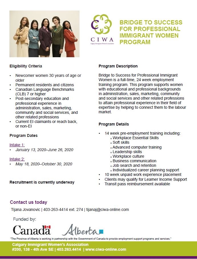 전문직 근무경험을 가지고 있지만 캐나다에서 원하는 직종의 일자리를 찾지 못하신 여성분들을 위한 프로그램을 진행하고 있습니다.