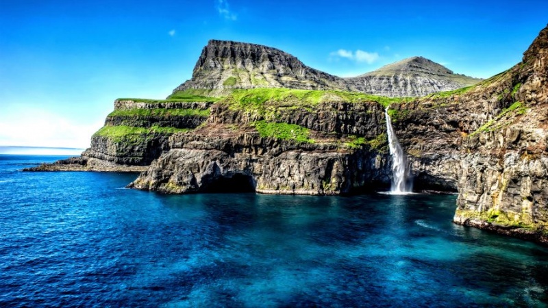 저 높은 산벼랑위에서 넓은 푸른 하늘과 바다를 바라보며