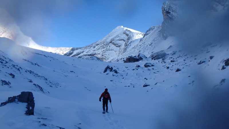 리찌를 만나면 왼쪽으로 경사면을 계속올라가다 보면 정상 아래에 도착한다(산악용 크램폰 사용).