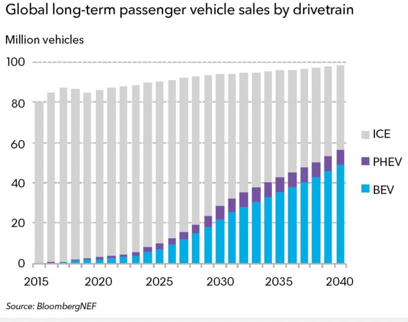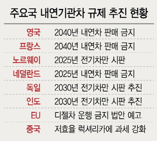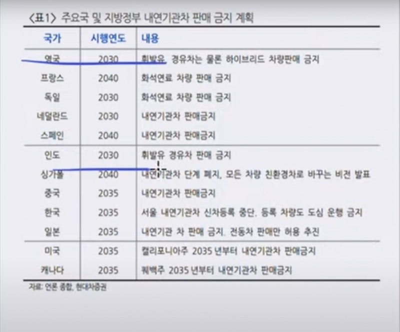 1) 내연기관 자동차의 성장은 2023년을 기준으로 역성장으로 들어 갑니다.