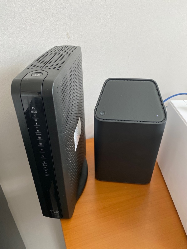 사진에 왼쪽은 구형, 오른쪽이 신형 모뎀
