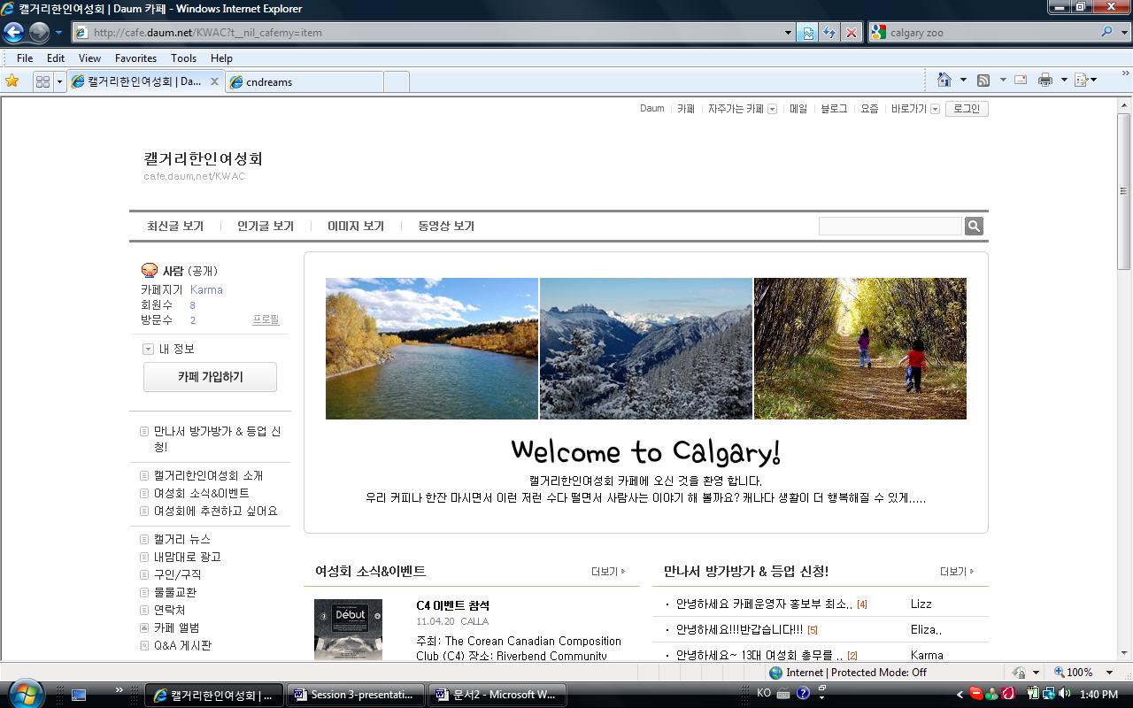안녕하세요! 캘거리한인여성회 13년 만에 카페가 개설 됬습니다.