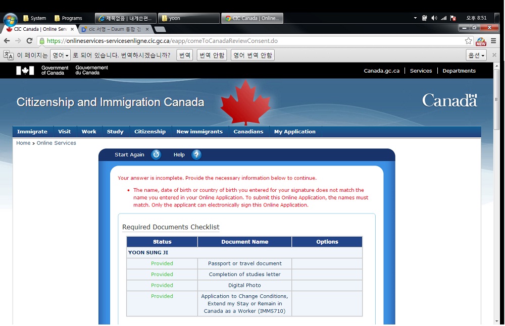CIC ONLINE 신청하는 곳에서 마지막에 안넘어 가지네요...