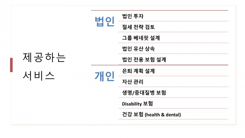- 은퇴를 준비하시는 분들에게 그룹 은퇴자금을 개인 은퇴 계좌로 변경해 드립니다.