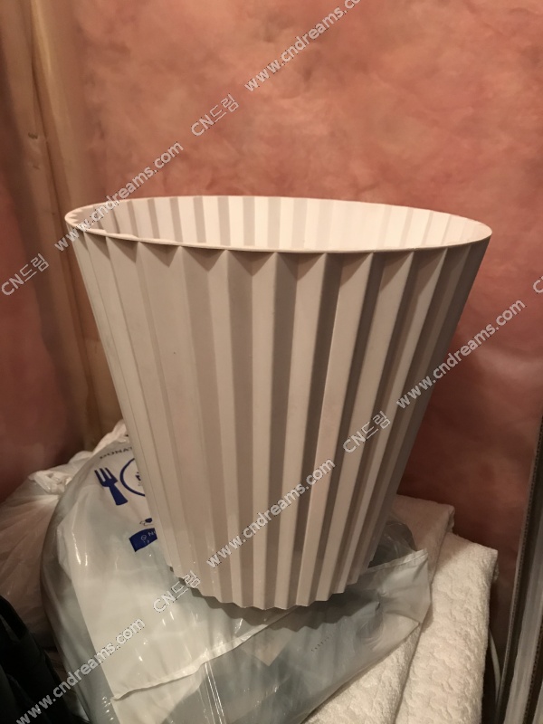 뚜껑있는 아이키아 컨테이너와 흰색 플라스틱 빈.