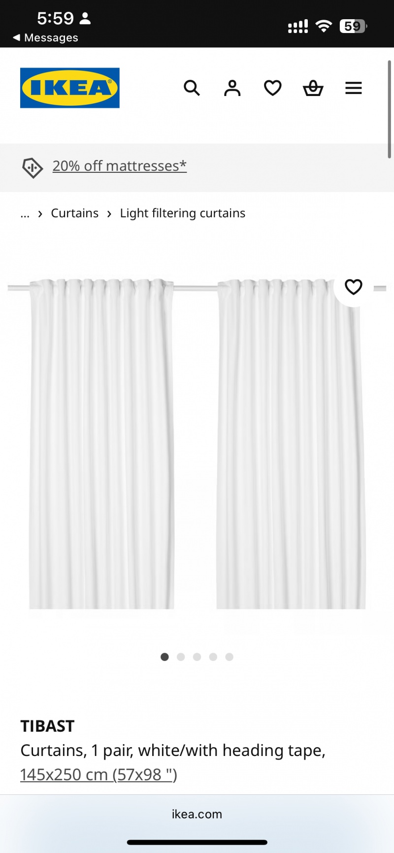 이케아 화이트 암막커튼 $60