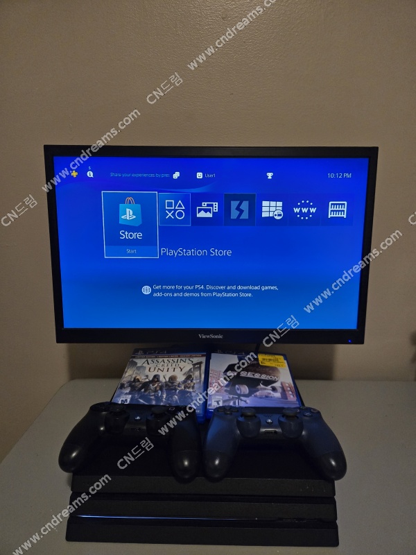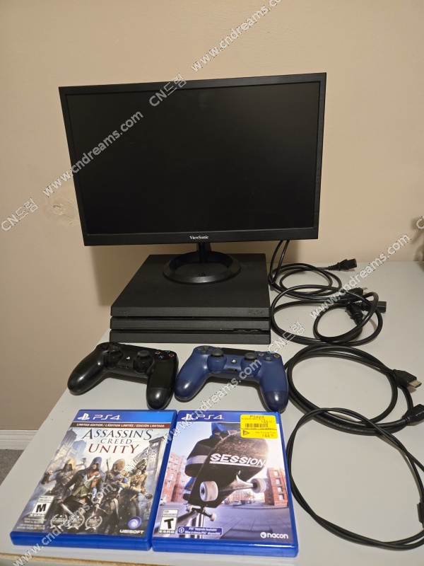 PS4 PRO 1TB with monitor, 2 controllers with 2 game, $205