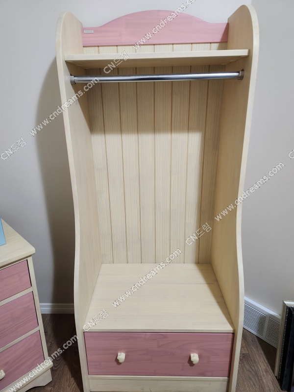 한국에서 사온 안데르센 아동용 서랍장과 옷걸이장 입니다. 옷걸이장엔 밑에 서랍이 있어요. 애들이 커서 이제 사용하지 않는거라 내놓습니다. 사용감 거의 없구요. 서랍장위에 운반하면서 한군데 긁힌 자국이 있습니다. MDF합판 아니고 원목에 친환경 페인트로 칠한 고급가구입니다. 각각 100불 입니다. 주말아침이나 주중 퇴근후에 배달도 가능합니다.