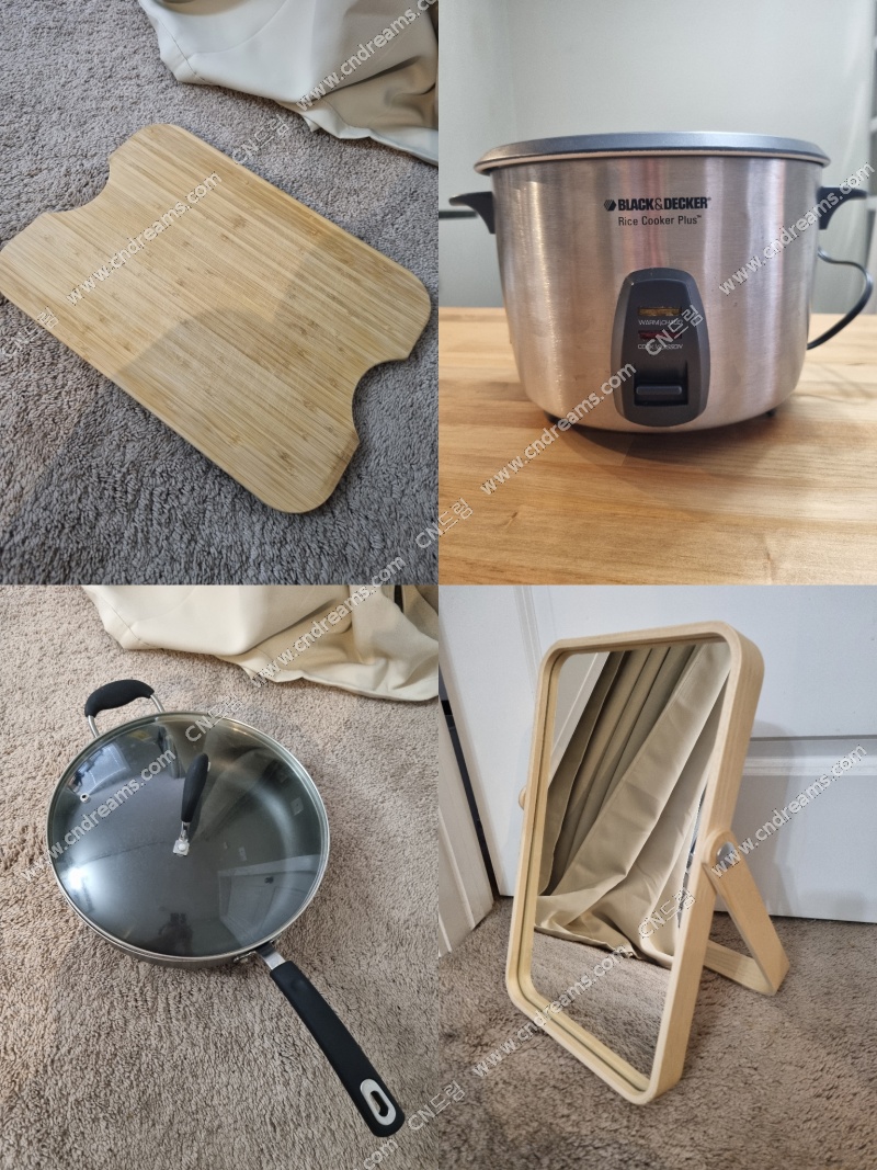 상반신 거울+싱크대 도마+밥솥+전골냄비 = 35불
