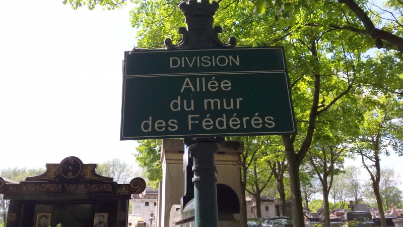 정문에서 왼쪽 보도를 따라 걸었다. 공동묘지가 분명한데 묘지라는 느낌이 들지 않는다. 월하의 공동묘지 같은 음산하고 기괴하고 머리털이 쭈뼛 곤두서는 처절하고 공포스러운 그런 분위기는 아니다. 비라도 부슬부슬 내려준다면 몰라도 그날은 날씨마저 청명했다. 걷다 보니 이정표가 나온다. 묘지가 워낙 넓고 크다 보니 곳곳에 이정표가 붙어 있다. Allee du mur des Federes 이 부근 어딘가에 있겠구나,