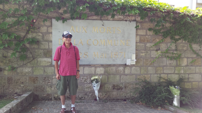 내가 걷는 발자국 소리만 들릴 뿐 깊은 정적에 빠져 있다. 이따금 바람이 나뭇잎을 스치는 소리와 이름 모를 새소리가 들려온다. 지나가는 사람도 없다. 보도가 오른쪽으로 휘어지는데 담벼락에 장방형 석판이 눈에 들어온다. 저 석판이 걸려있는 벽 앞에서 마지막 꾜뮈나르 147명이 총살 당했다. 총살 당한 시신은 미리 파놓은 구덩이로 떨어졌으니 흙으로 덮기만 하면 되었다. 담쟁이 넝쿨만이 꼬뮤나르의 넋을 만져주고 있는 초라하고 볼품없는 꼬뮈나르 벽은 프랑스가 혁명좌파를 어떻게 생각하고 대우하는지 말해주고 있다.