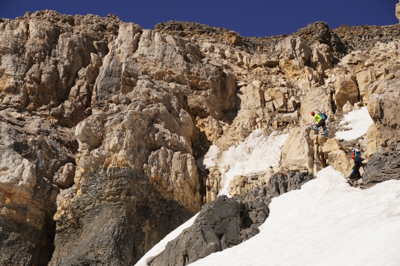 Mount Smuts보다 어려운 ice field에있는 Mount Chephren(3271m)을 오르다