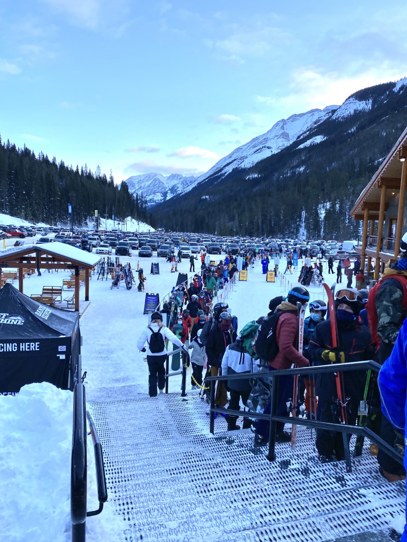 거기서부터 곤돌라를 타기위해 8시부터 줄을섰는데 곤돌라는 9시 50분에서야 탈수 있었어요. 2주전 평일에 갔을때는 40분 기다렸는데 연말연시 연휴에 방학이고 락다운이라 모두 스키장으로 몰린듯 싶었습니다.