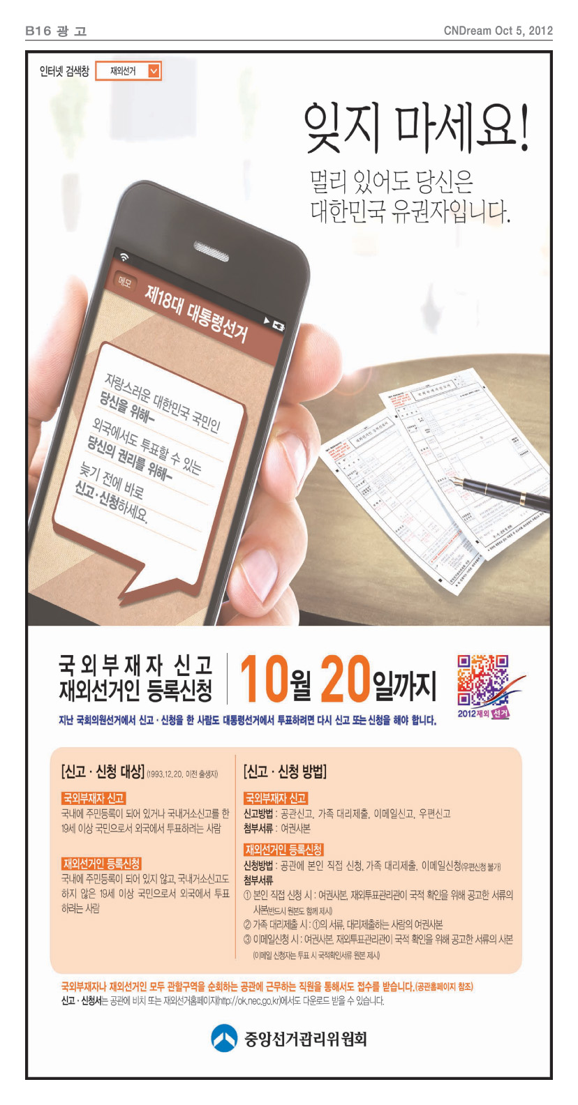 공지) 대통령선거, 신고 신청 마감일이 10월 20일입니다.