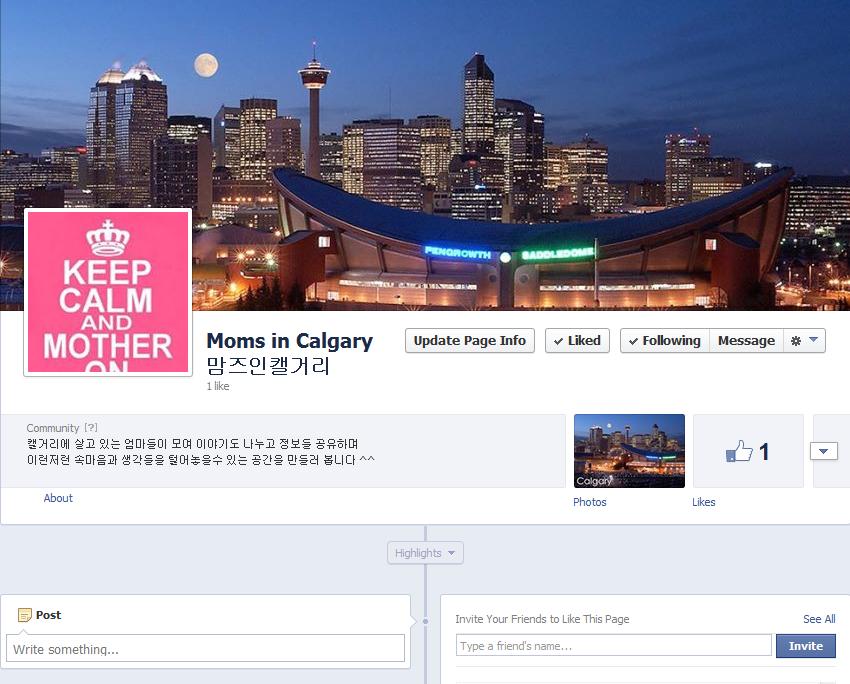 페이스북에 "맘즈인캘거리"란 페이지를 열었습니다-