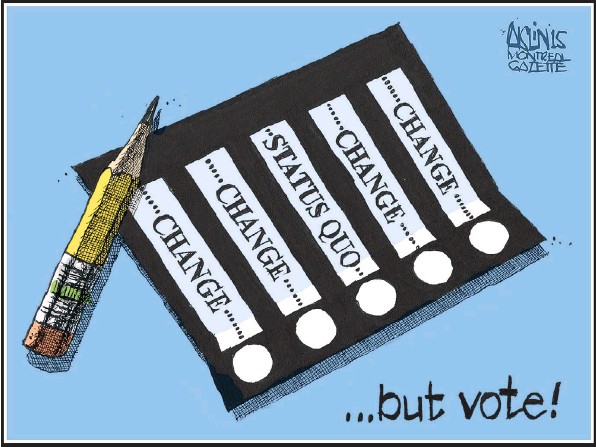 퍼온 사진 ) 변화를 바라는 캐나다인들의 심정을 잘 나타낸 그림이라 생각합니다. 9년 했으면 많이 한거지요, 바꿀 때 되었습니다.