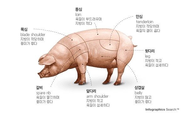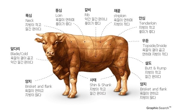 소고기 및 돼지고기 영문 명칭 입니다.