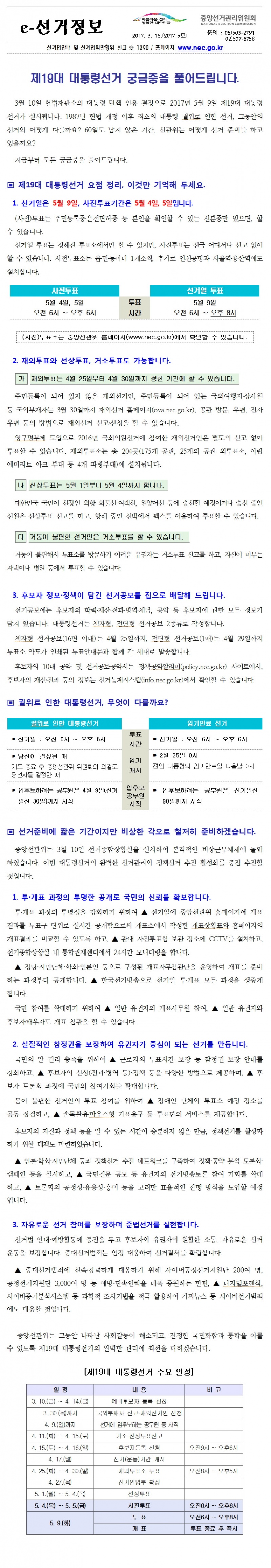 중앙선관위 보도자료) 5월 9일 모국 대통령 선거 확정및 상세 안내