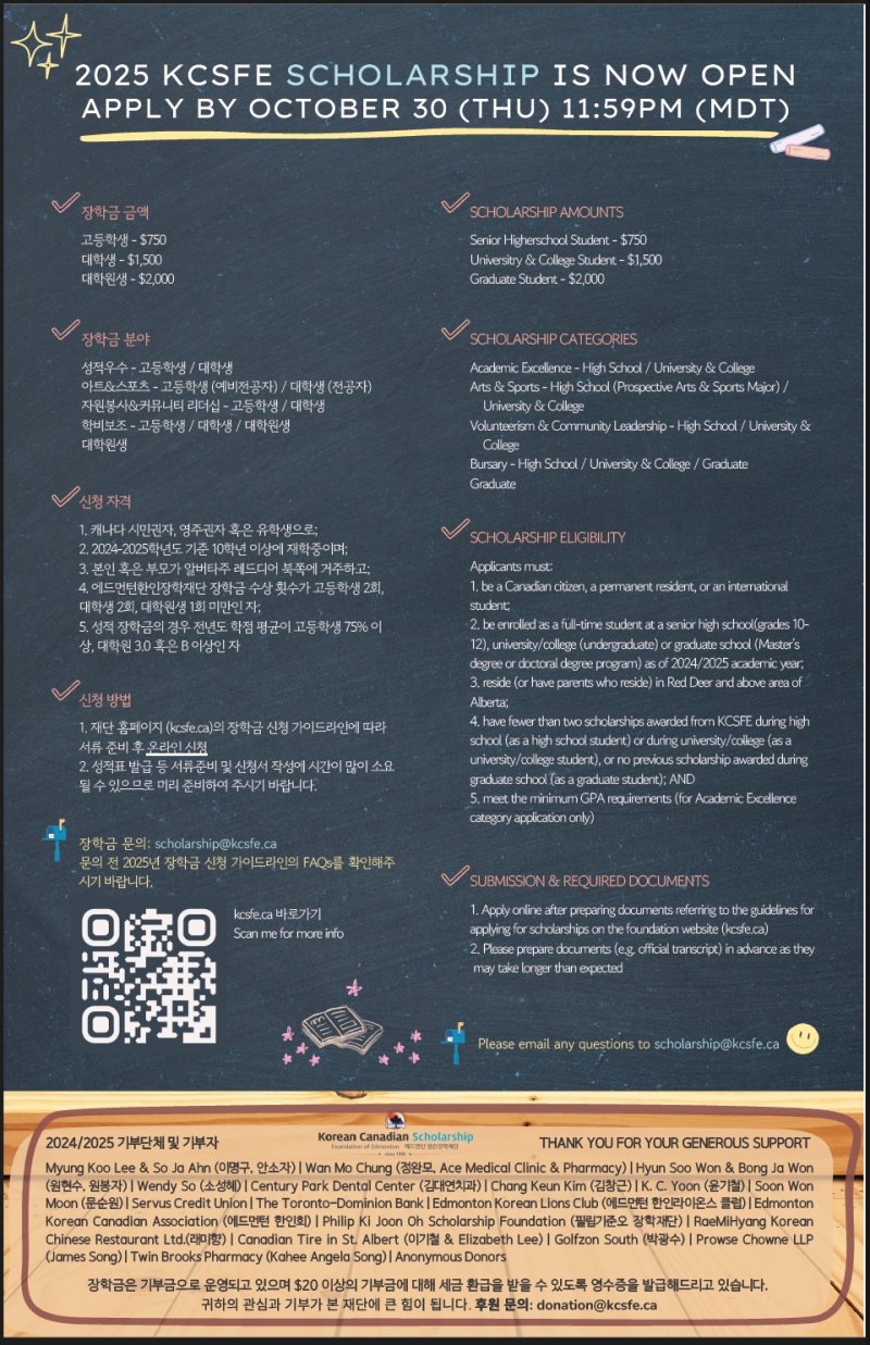 에드먼튼 한인장학재단 장학생 모집 공고