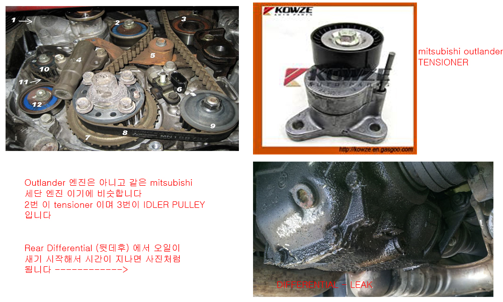 드라이브 벨트와 텐셔너를 교환 해주어야 합니다
