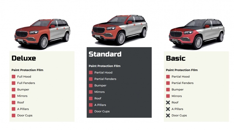 - Full Vehicle with Colored PPF $4500 for Sedan, $4700 for SUV/Sports Car, $4900 for Truck