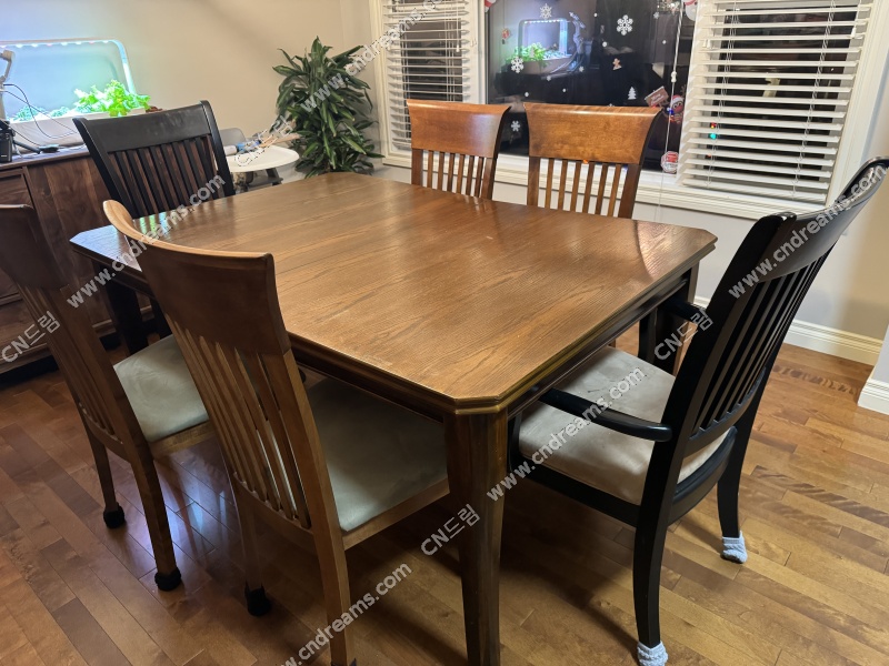 Dinner table 팝니다. 테이블과 의자 6개 $250 입니다. Extend도 가능합니다.