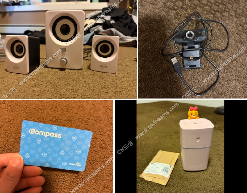 잡화) 컴퓨터 스피커, 웹캠, 카카오 가습기, 밴쿠버 교통카드, 220v -110v 변압기