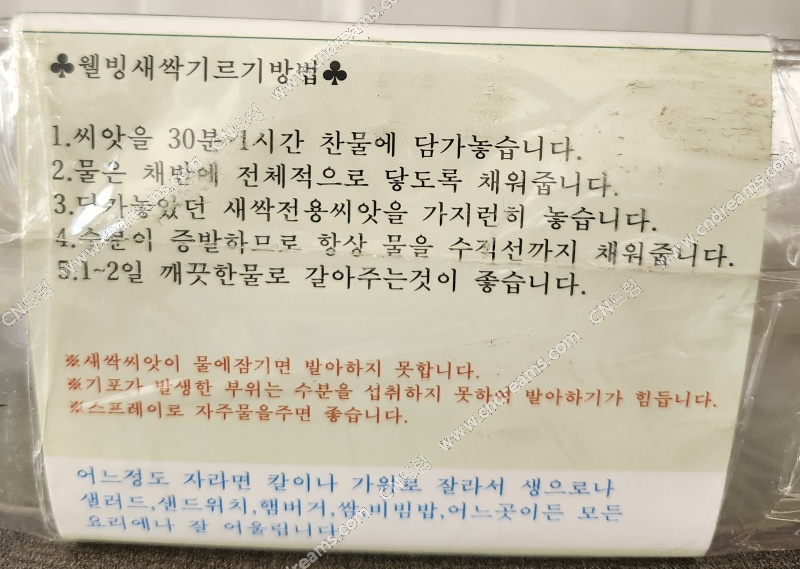 기르는 방법과 웰빙새싹종류는 사진 참조하세요
