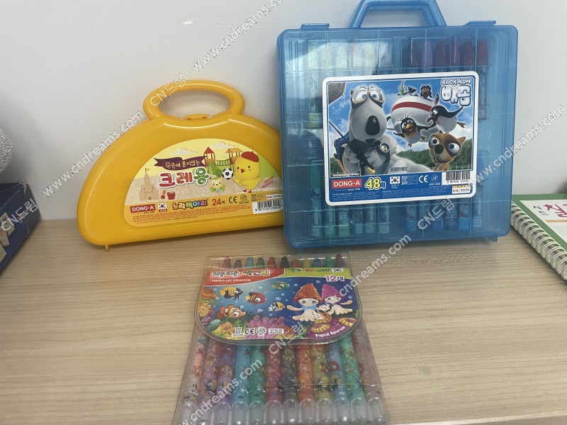 칠교놀이 책 3 권+ 칠교판 + 한국에서 산 크레용 3세트