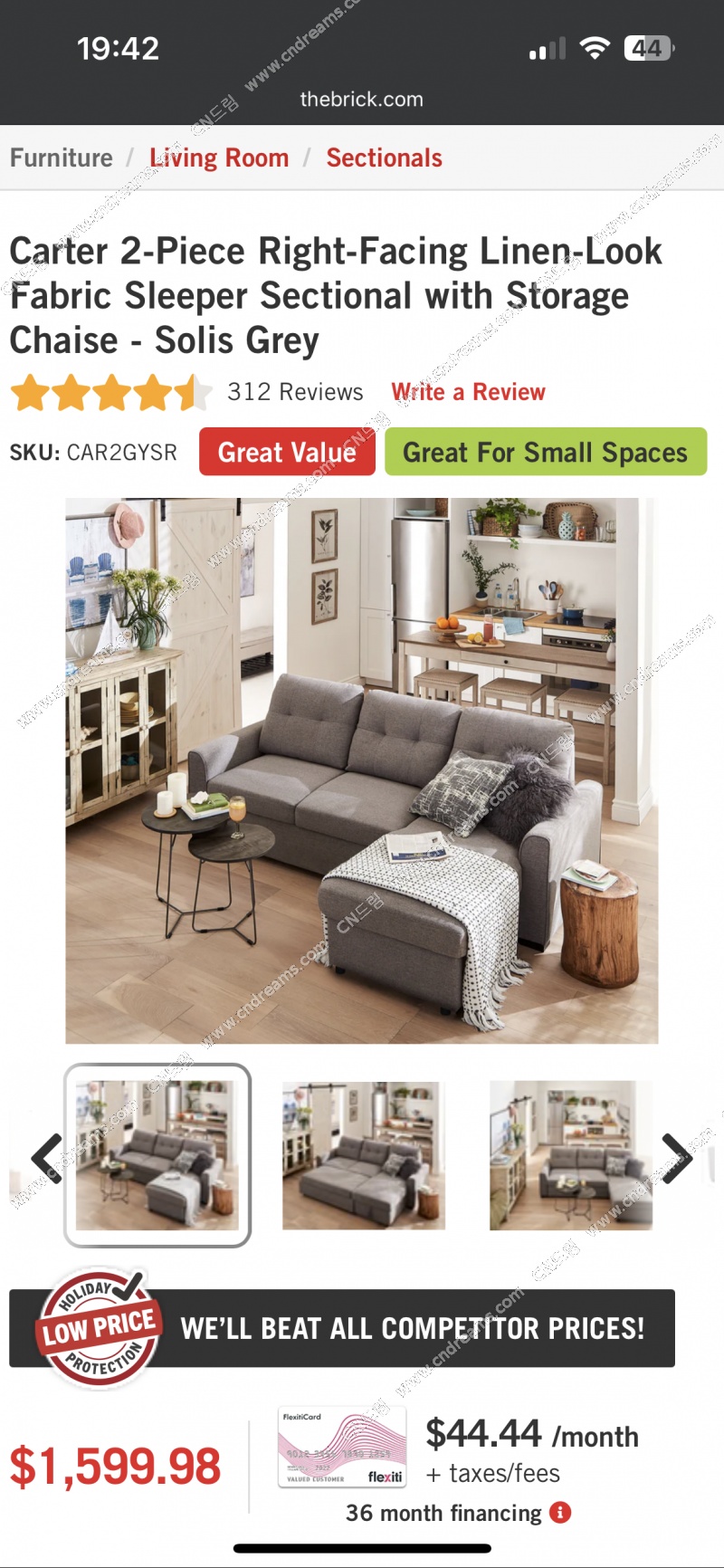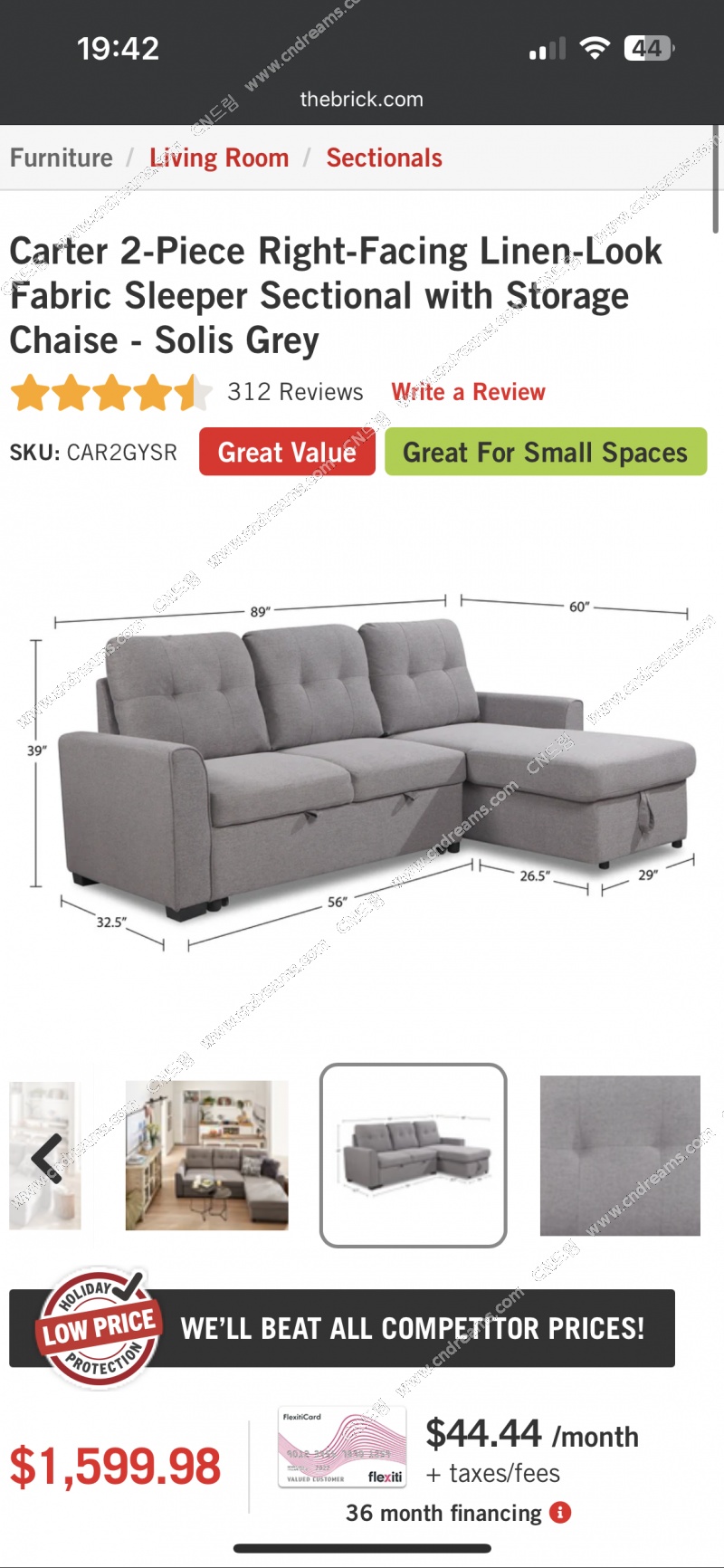 The Brick에서 구매했고, 디테일은 웹사이트에서 확인하실 수 있어요. https://www.thebrick.com/products/carter-2-piece-linen-look-fabric-right-facing-sleeper-sectional-solis-grey?gad_source=1&gad_campaignid=21873563004&gclid=CjwKCAiA24XJBhBXEiwAXElO3wAWYfMrESqO4FF-S-aZrZ_1fU7mXfRO6BYGqz5__nbetnFvIeCxaRoC2f8QAvD_BwE
