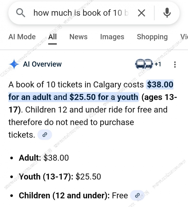 Calgary Train bus tickets for Adults
