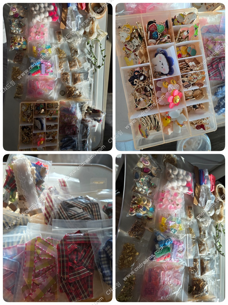 오링, 고리, 체인, 여러 캐릭터 및 주얼리파츠, 레이스리본 다 있어요.
