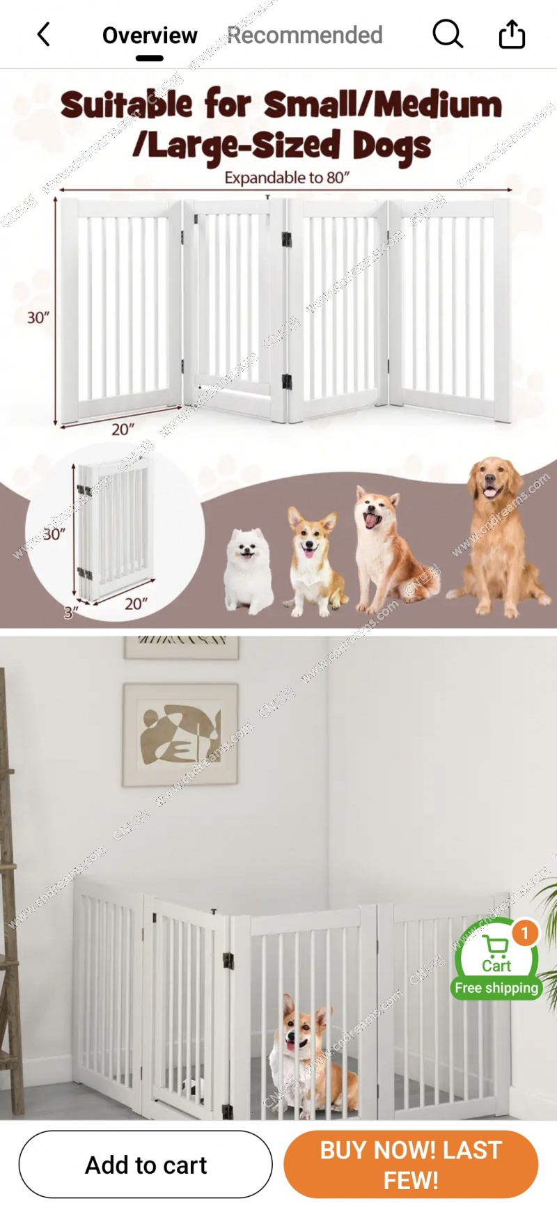 완전 튼튼한 Costway Brand New Pet gate 80불