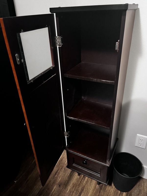 (사진참고) 원목 3단 타워형 수납장 (좁은 공간 유용) 수건보관용으로 썼어요 30불 오늘 픽업시 25불