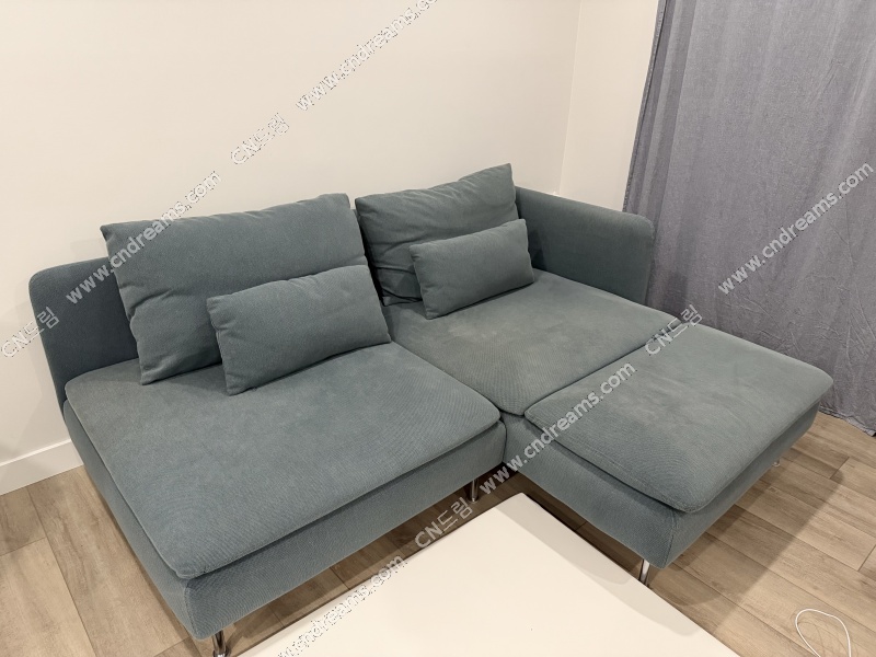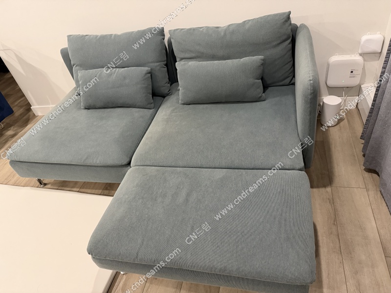 펫, 스모크, 키즈 프리 집에서 부부 둘이 2년 반 정도 사용했어요. 가족이 늘어나고 집이 좁아져서 판매합니다. 햇빛 때문인지 색상이 좀 바랜 곳이 있어서 $200에 판매합니다. Ikea에서 판매하고 있는 세재품 금액은 $960입니다. 현재는 이 색상은 없네요. 커버 다 분리 세탁 가능합니다. 두 개가 밑에 연결되어 있는데 픽업하실 경우 분리해 놓겠습니다. 가격 조정은 불가능하고 안 팔리면 그냥 둘 생각입니다. 제목 변동이 없으면 아직 판매 전으로 보시면 될 것 같아요.