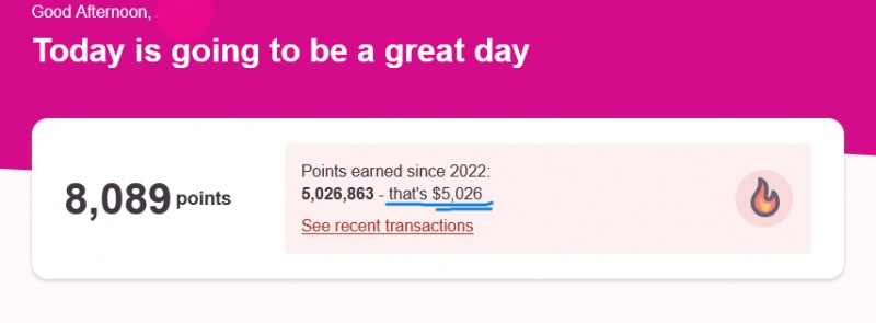 사진) 사계절4: 위의 사진은 제가 지난 만 3년 동안 받은 포인트 금액입니다.($5,026)
