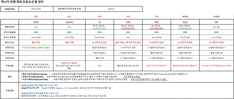 TD은행 이후에는 Scotia > BMO 순으로 프로모션을 받으시길 추천드립니다.