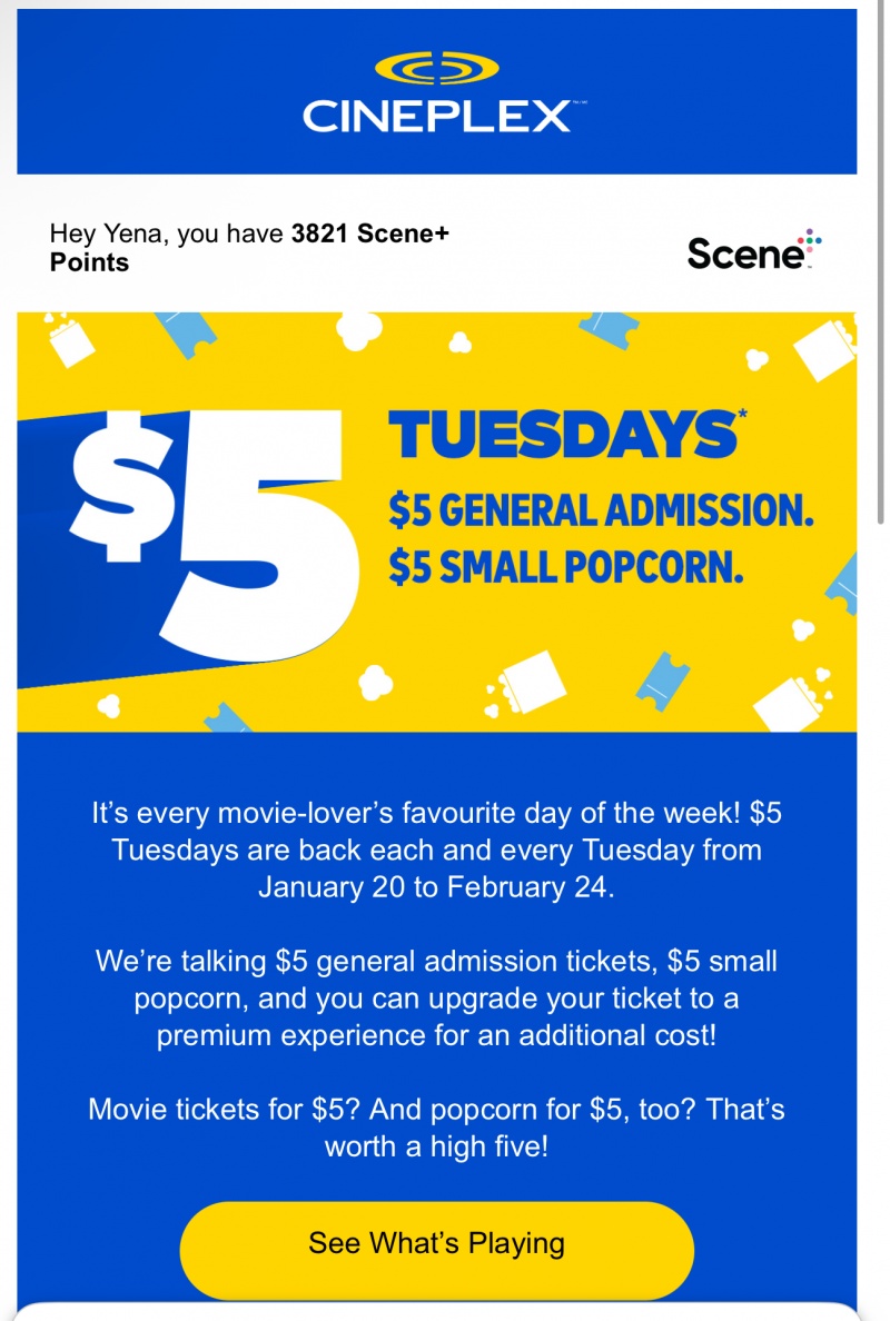Scene 멤버들은 더 할인 받아 1인당 4.50불에 구입 가능하구요