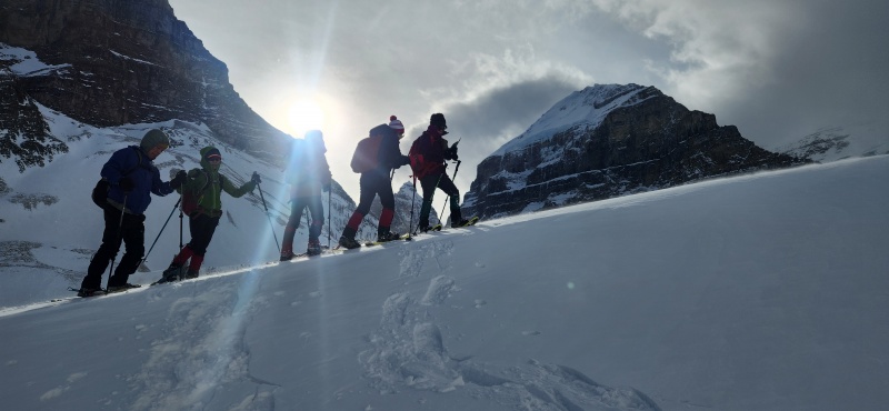 산악 눈신과 산악 스키가 함께한 산행.