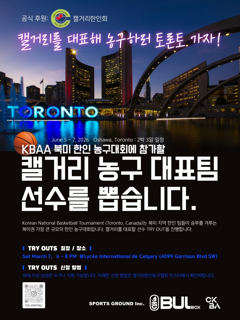 토론토에서 열리는 북미한인농구토너먼트에 함께 갈 캘거리농구대표팀 선수를 뽑습니다.