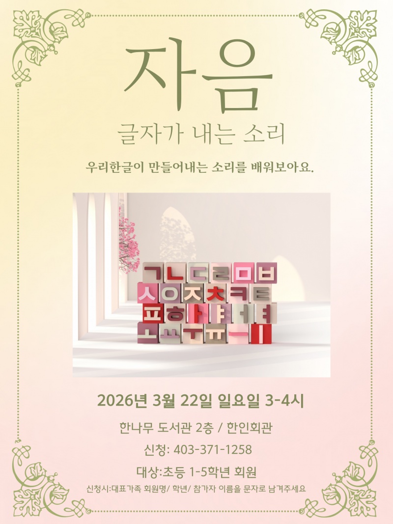 [캘거리한인문화센터] 한글 소리 교실