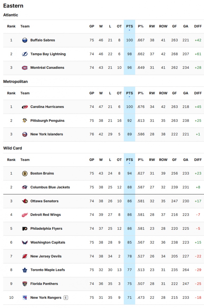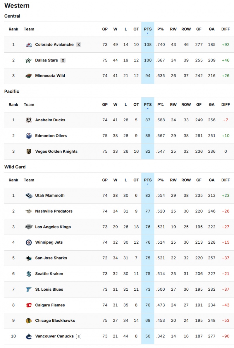 NHL 북미 하키리그 25~26년도 정규 시즌이 거의 끝나가고 있는 가운데 32개 팀들은 플레이오프 PO 진출을 위해 막판 기세를 올리고 있다.
