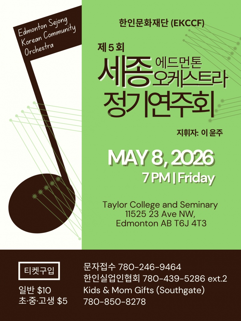 에드먼튼 세종 오케스트라 정기연주회.. 5월 8일(금) 오후 7시