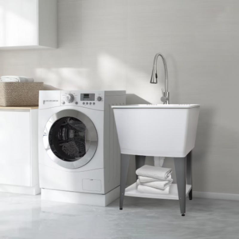 현재 세면대는 아래에 캐비넷이 들어가는 형태의 일반 세면대인데, 이걸 위 사진과 같은 Utility Tub으로 교체하고 싶어요.