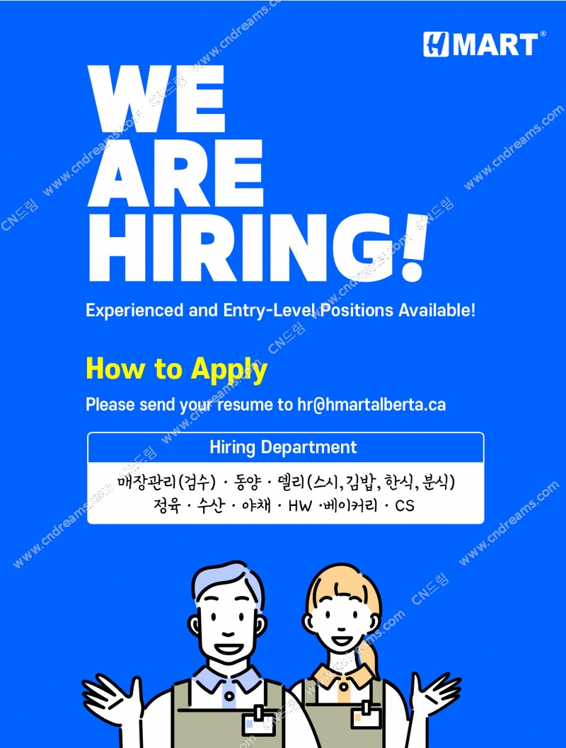 [구인] **H-Mart Edmonton (Calgary Trail)점 함께 일할 직원모집** / 매장지원/동양/베이커리/시식/정육/델리/HW / 에드먼튼 1호점