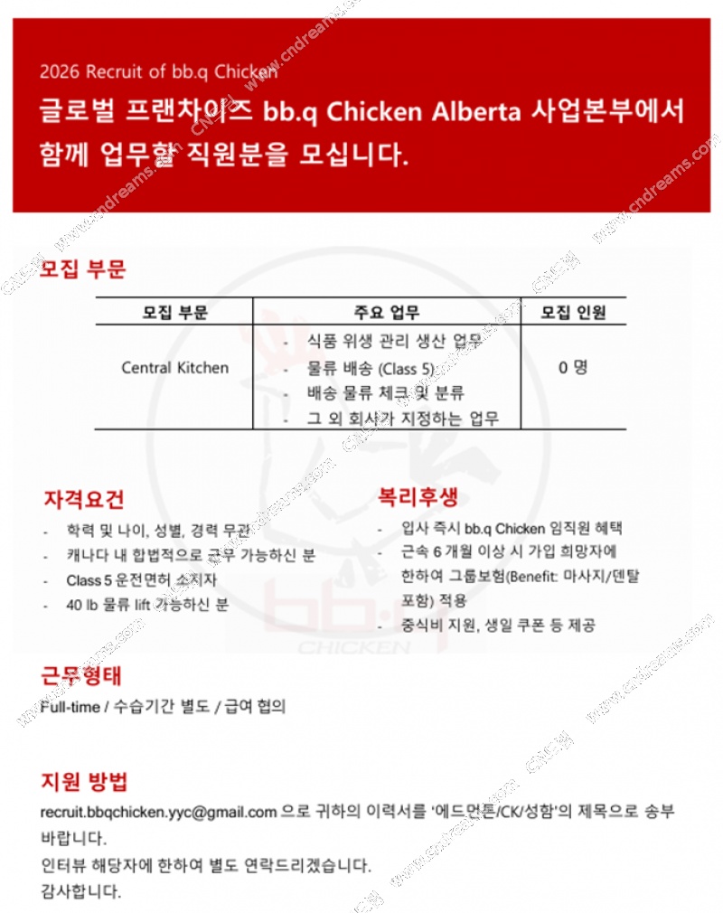 recruit.bbqchicken.yyc@gmail.com으로 귀하의 이력서를 ‘애드먼튼/CK/성함’의 제목으로 송부 바랍니다.