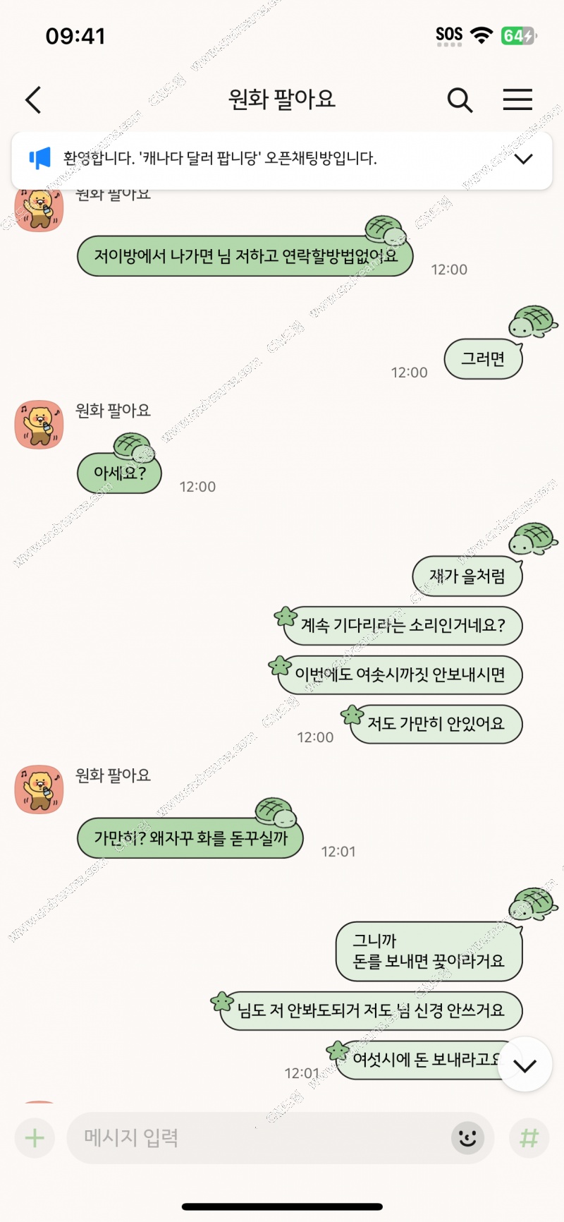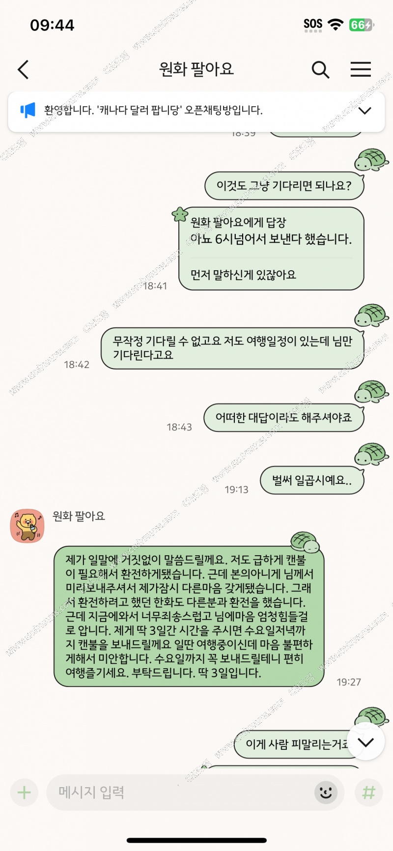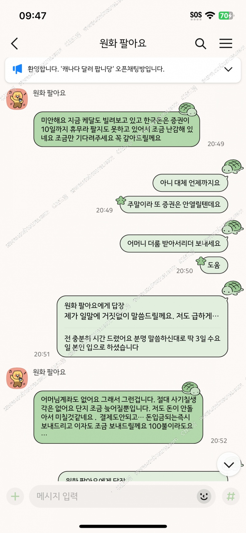 • 하루가 지나도 입금되지 않았고, “캔불로 다시 보내겠다”라는 말만 반복