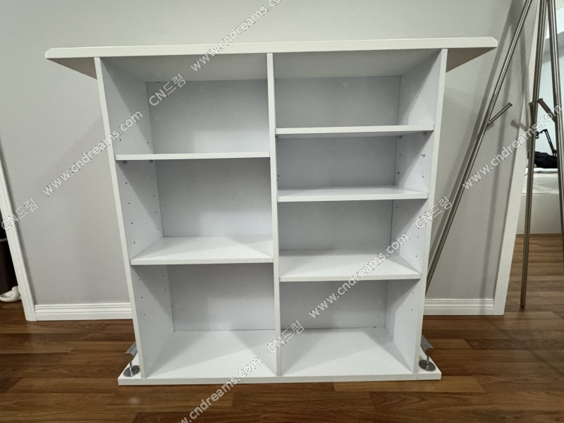수납공간: 총 6칸의 오픈형 칸막이 (높이 조절 가능) – 와인병, 잔, 바 액세서리 수납에 최적화
