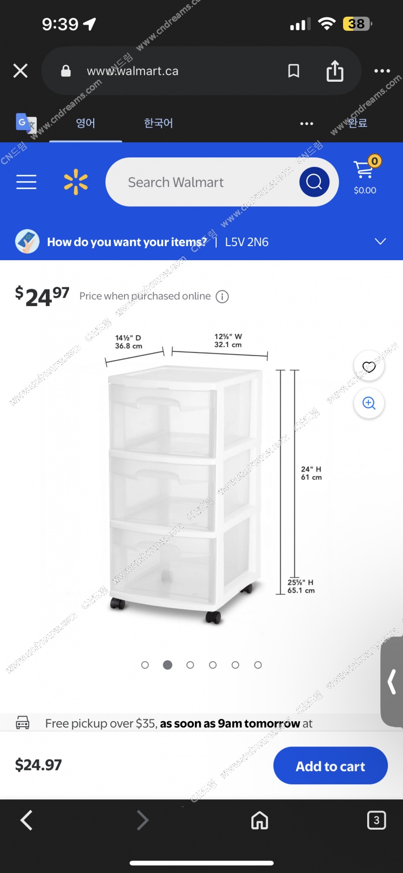 3단 플라스틱 바퀴형 서랍장 팔아요