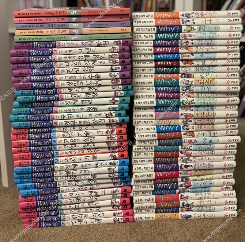 역사학습만화 Why책은 총 32권이 있고 30불에 판매합니다. How so는 총 31권 있고요 거의 새 책 컨디션이라 45불에 판매합니다. 과학은 흐른다 라는 책은 만화로 되어 있지만 수준이 좀 높은 편이라 중학생도 읽을만합니다. 10불.